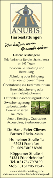Wir sprachen mit Herrn Dr. Hans-Peter Clieves, Leiter der Anubis Tierbestattungen in Frankfurt und dem Rhein-Main-Gebiet.